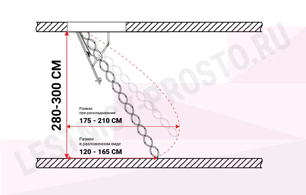 Лестница предназначена к установке в помещениях с высотой потолка 320 см, дополнительная секция позволяет увеличить высоту лестницы.