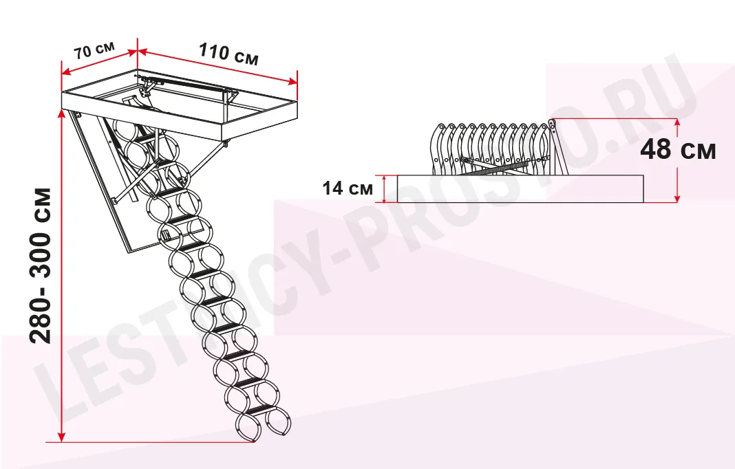 Чердачная термоизоляционная ножничная лестница FAKRO LSF 70×110 см, h-300 см