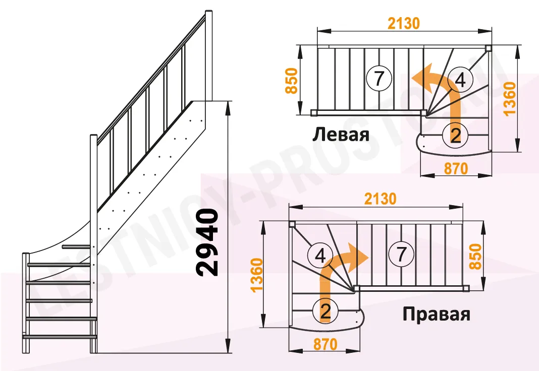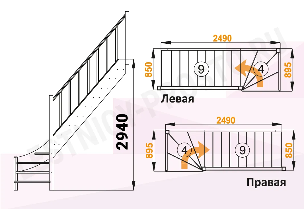 | Лестница из сосны ЛС-07М/4 с подступёнками под покраску |