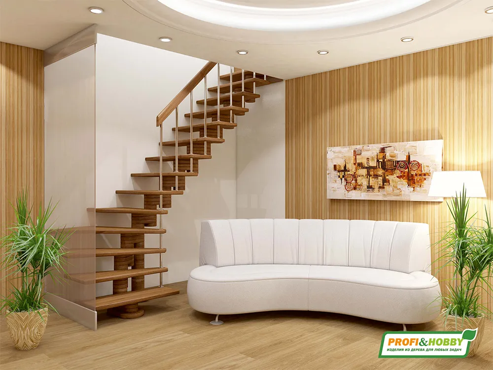 Ступени и поручень изготовлены из бука, остальные элементы из сосны. Возможно изготовление данной модели полностью из бука.
