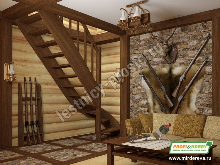 Ступени и поручень лестницы изготовлены из дуба, остальные элементы из сосны.