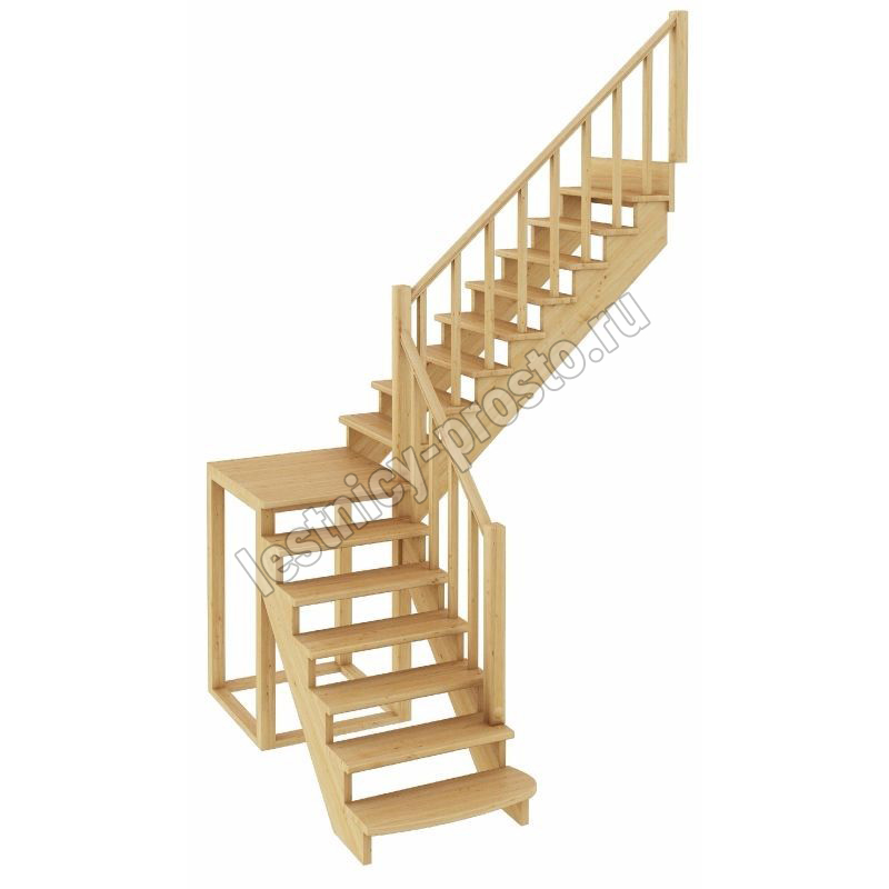Базовый комплект включает в себя деревянные элементы лестницы с подступёнками и ограждения без какого-либо покрытия.