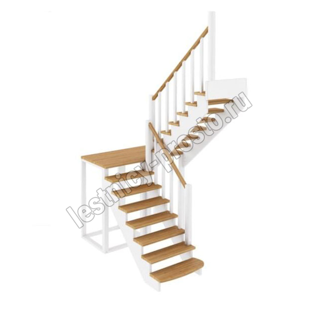 Ступени и поручень лестницы выполнены из ясеня, остальные элементы из сосны. Возможно изготовление данной модели полностью из ясеня.