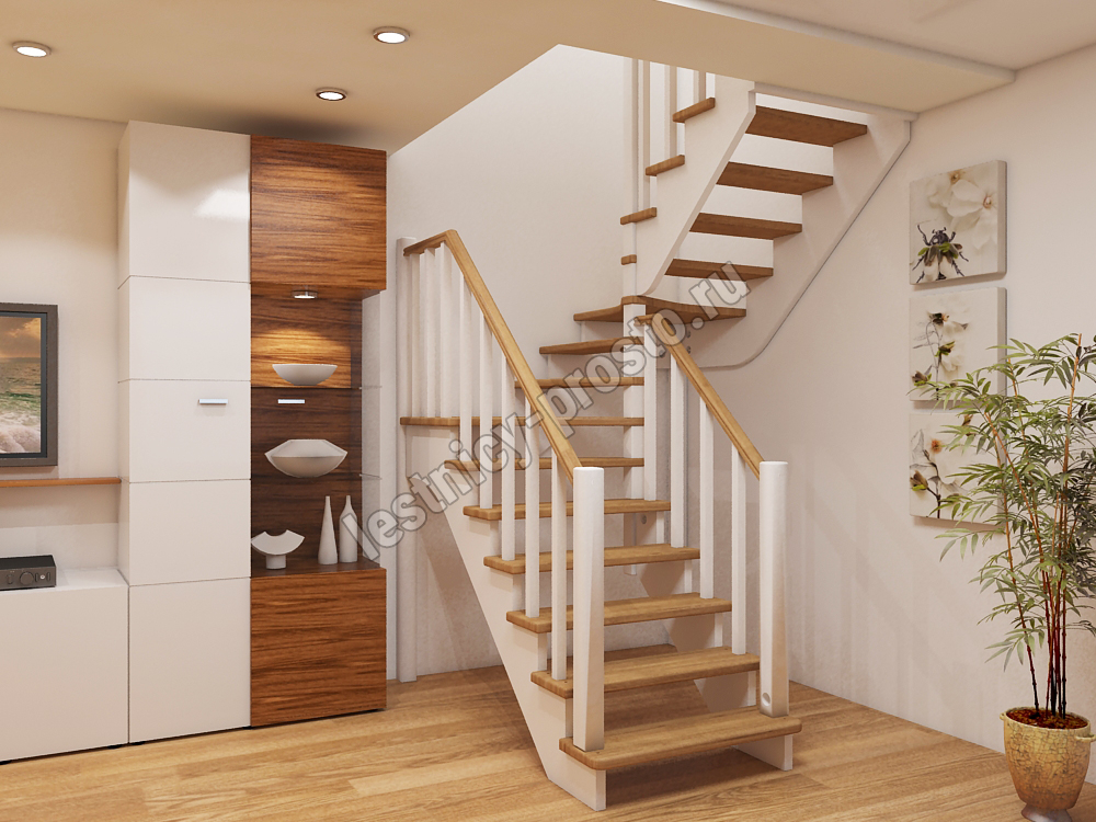 Ступени и поручень лестницы изготовлены из ясеня, остальные элементы из сосны.