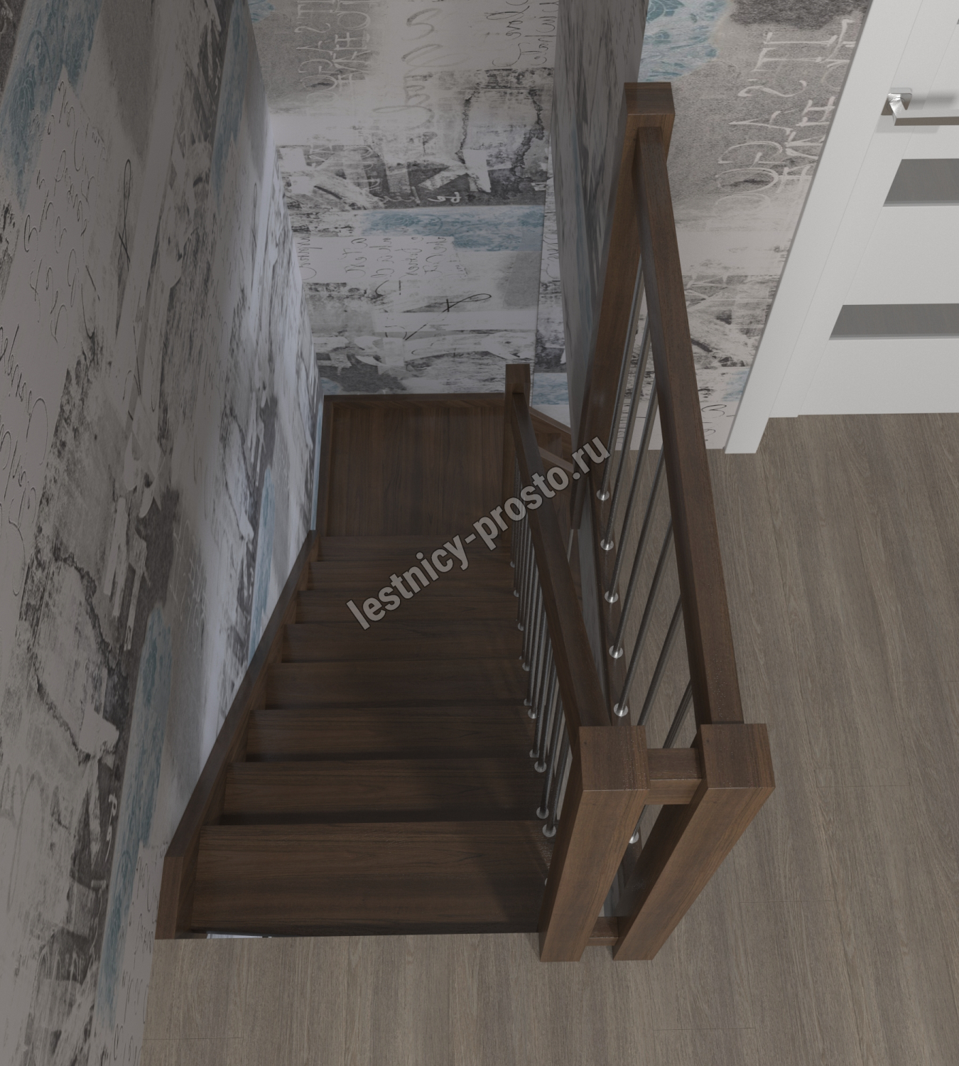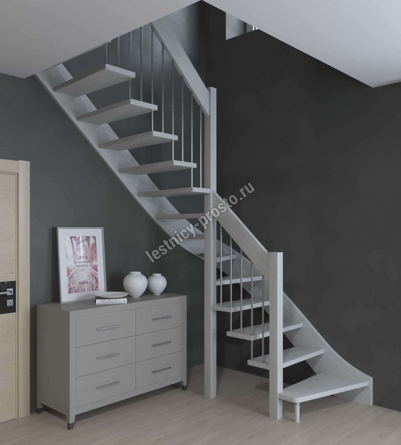 Лестница Prosto Console г-образная забежная бук, h300 см