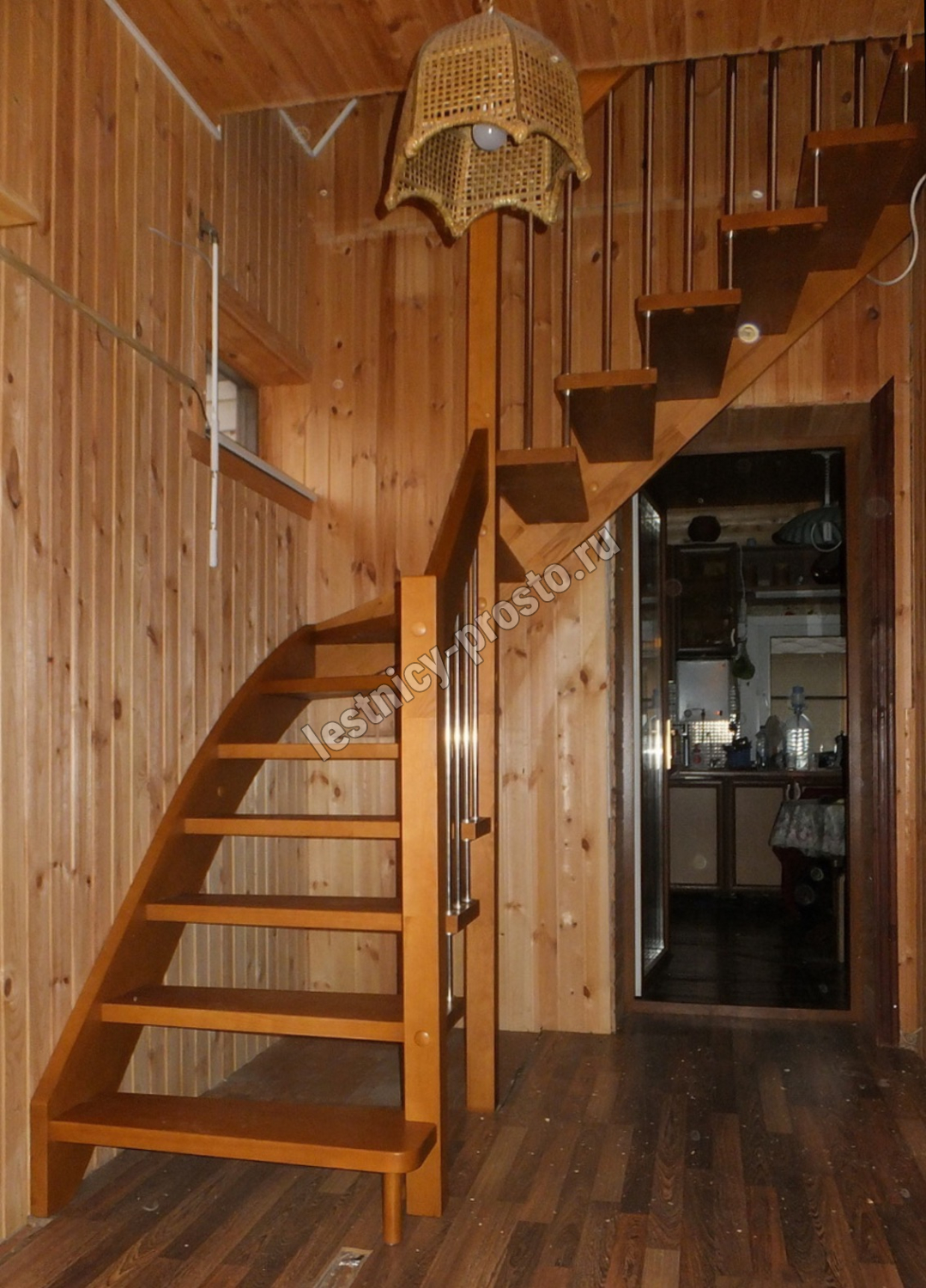 возможна комбинированная лестница: из сосны (ступени бук, ясень, дуб);