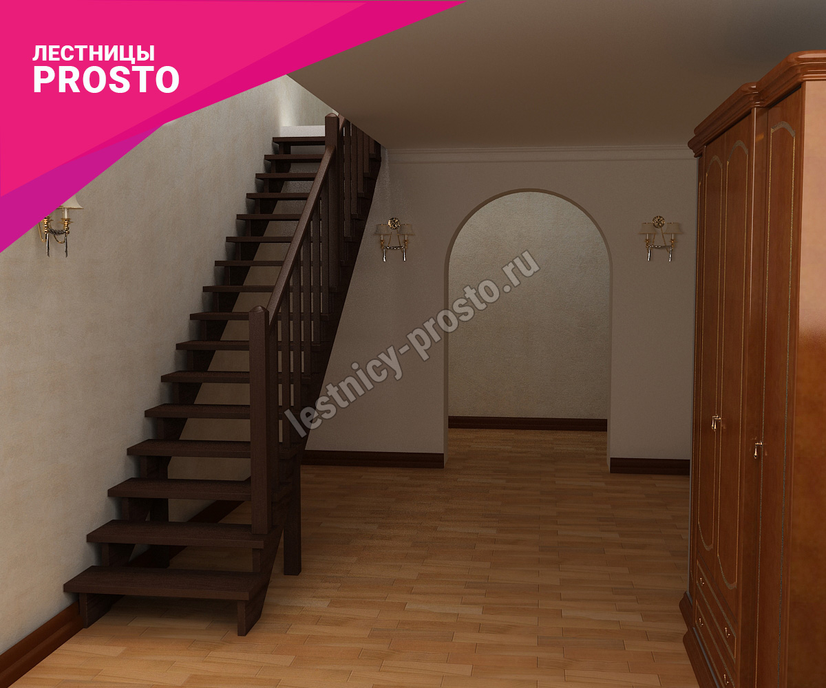 Данная лестница изготавливается под заказ в течении 4-5 недель. Возможно изготовление этой модели с другими размерами, подходящими под параметры вашего помещения. Базовое ограждение можно заменить на кованое или точеное. Ступени можно дополнить подступенями, бортиками, миниподступенями. Возможна установка лекальной (пригласительной) ступени. У лестницы комфортная высота шага, удобный широкий марш и угол подъема.