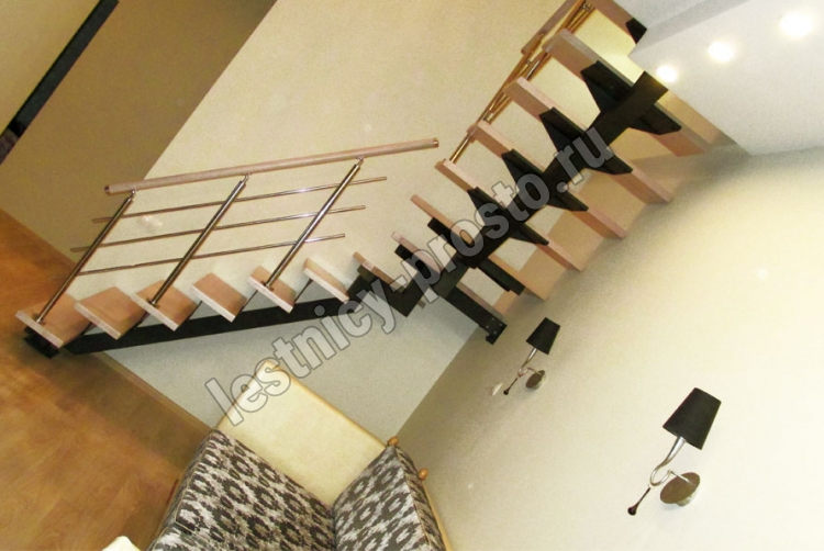 Комплект ограждений для Г-образной лестницы PROSTO MONO из 14 ступеней.