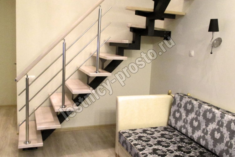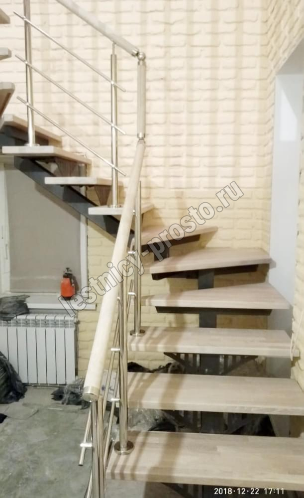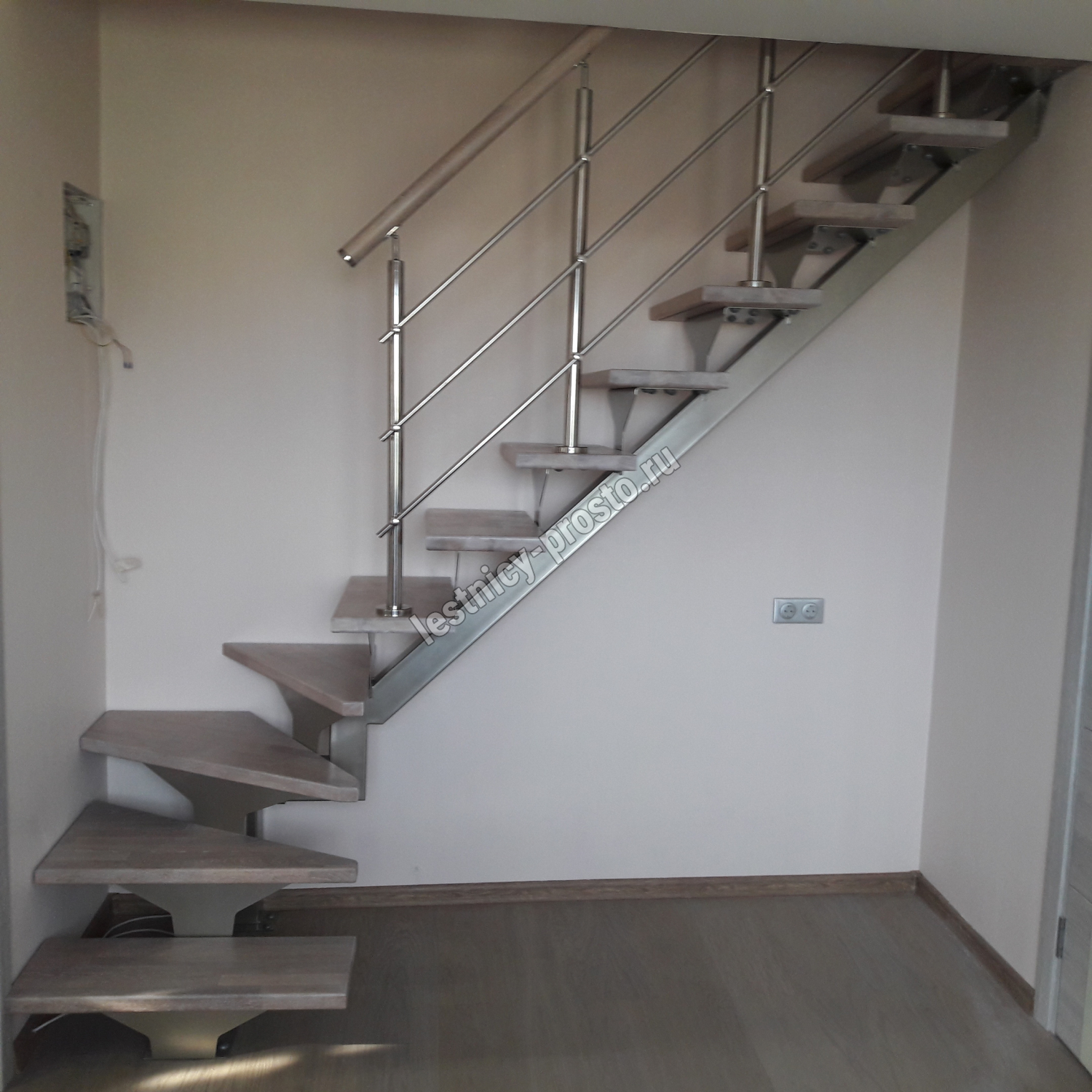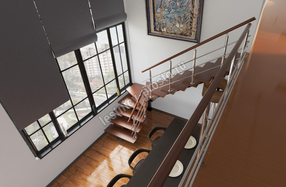 Комплект ограждений для П-образной лестницы PROSTO MONO из 14 ступеней.