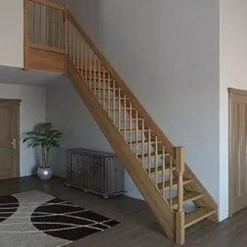 В комплекте: 3 прямых столба и профильный поручень без покрытия, набор из 3 ригелей из стали (окрашены в цвет каркаса или хром по желанию) диаметром 12 мм. Ограждение начинается со второй ступени.