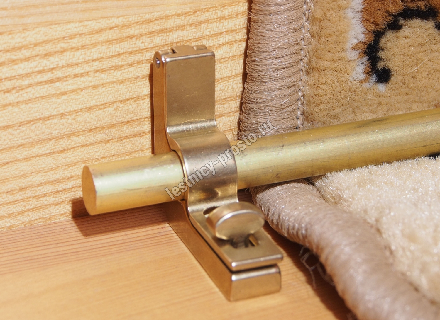 Ковродержатель комплектуется двумя держателями из латуни цвета золото, а также цельным прутком из латуни длиной от 251 до 300 см. Конструкция является сборно-разборной не требующей демонтажа креплений, что делает ее долговечной и очень удобной для чистки ковров и ковровых покрытий.