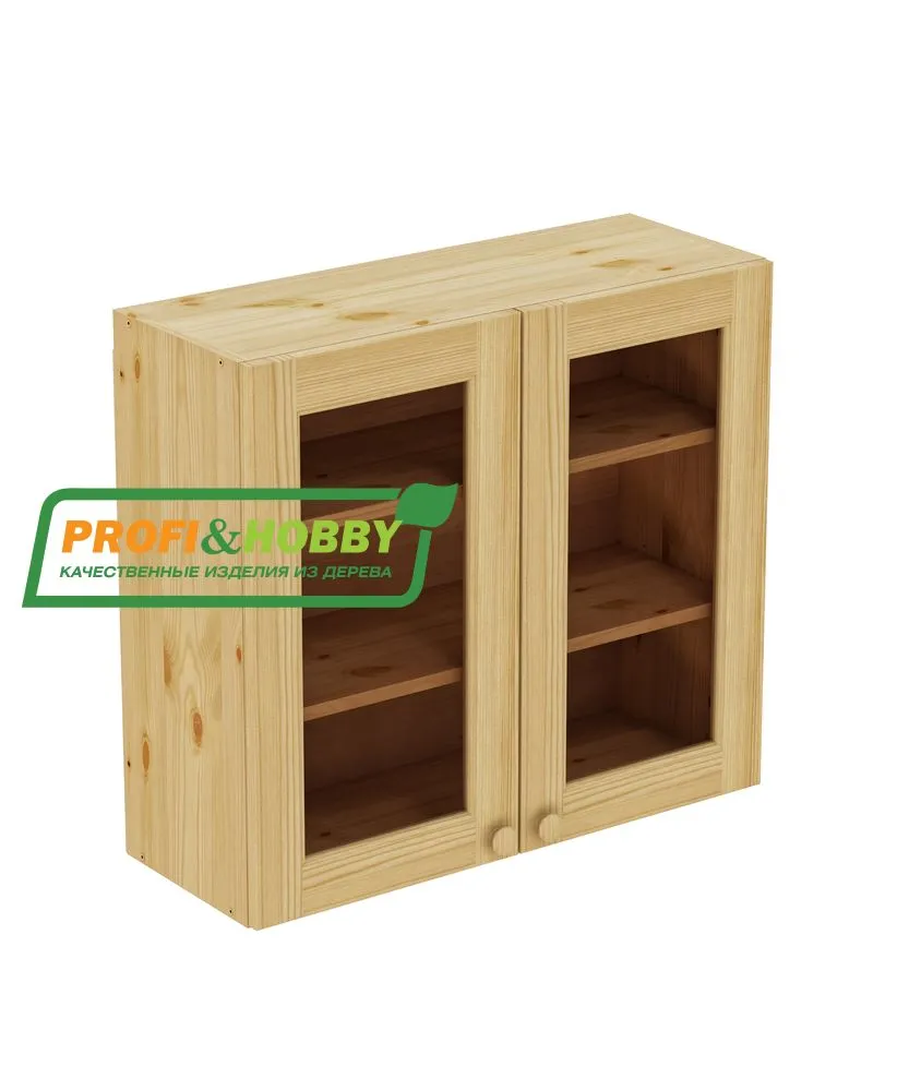 Шкаф навесной изготовлен из 100% массива дерева, без шпона и без МДФ/ДСП.