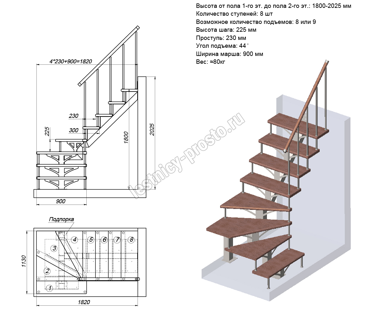 - таким образом вы получаете возможность увеличить общую высоту подъёма лестницы до необходимой.