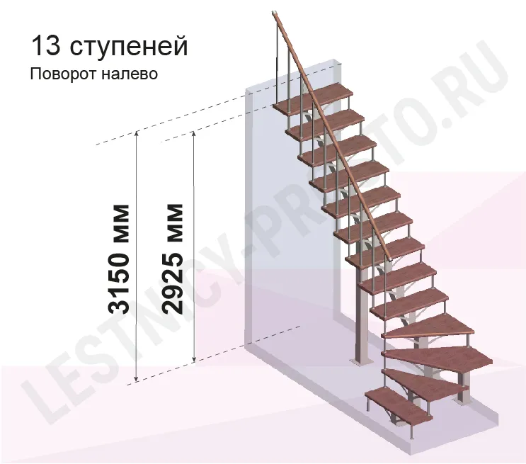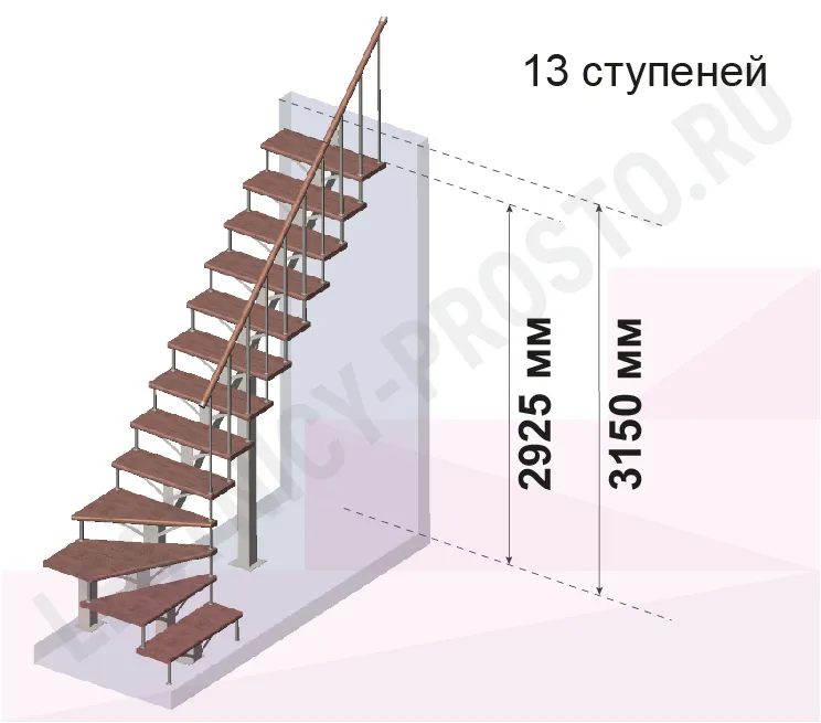 Под заказ возможно изготовление каркаса лестницы PROSTO MONO с поворотом начинающимся с любой ступени, а также, возможно реализовать поворот через площадку. Звоните нам по любым возникающим вопросам, мы поможем сориентироваться и сделать правильный выбор.