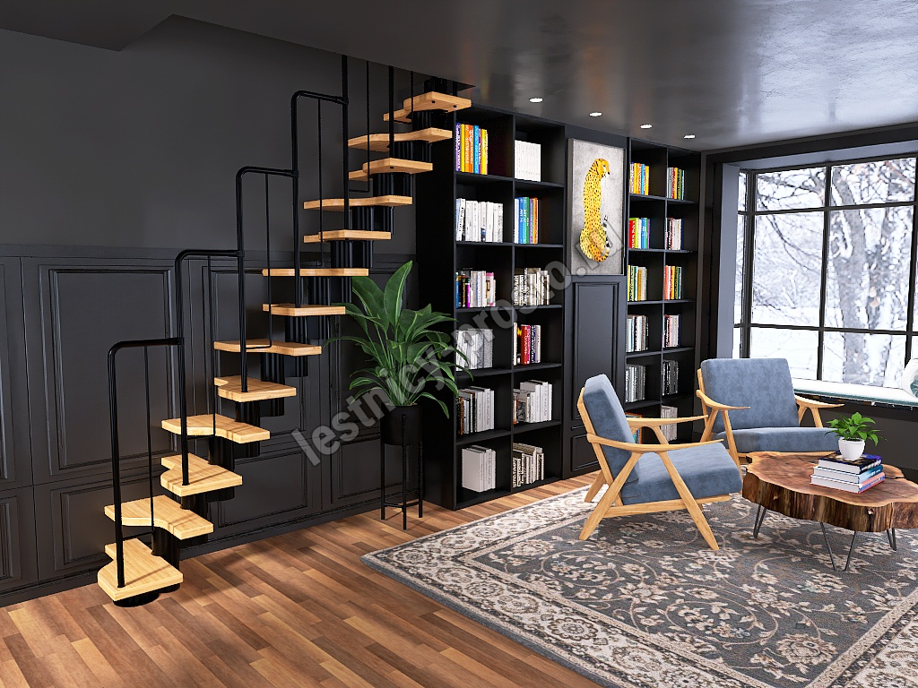 Лестница Prosto Urban Black гусиный шаг 700 мм, h216-312 см (12 ступеней), дуб