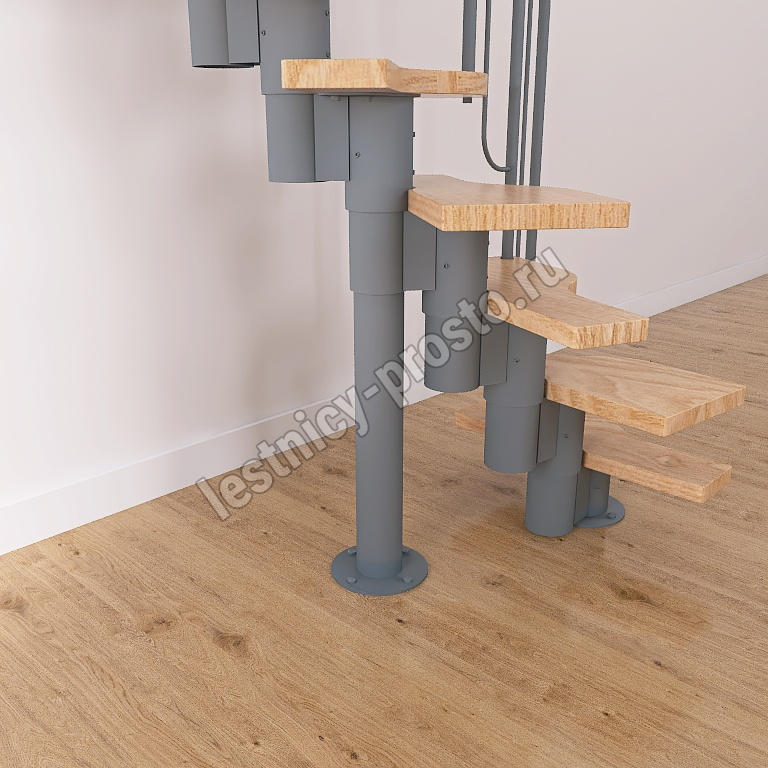 - Регулируемый по высоте в пределах 180-240 мм модуль. Большой диаметр и толщина металла деталей обеспечивают жесткость и прочность конструкции. Регулировка каждого модуля по высоте позволяет легко приспособить лестницу под ваше помещение.