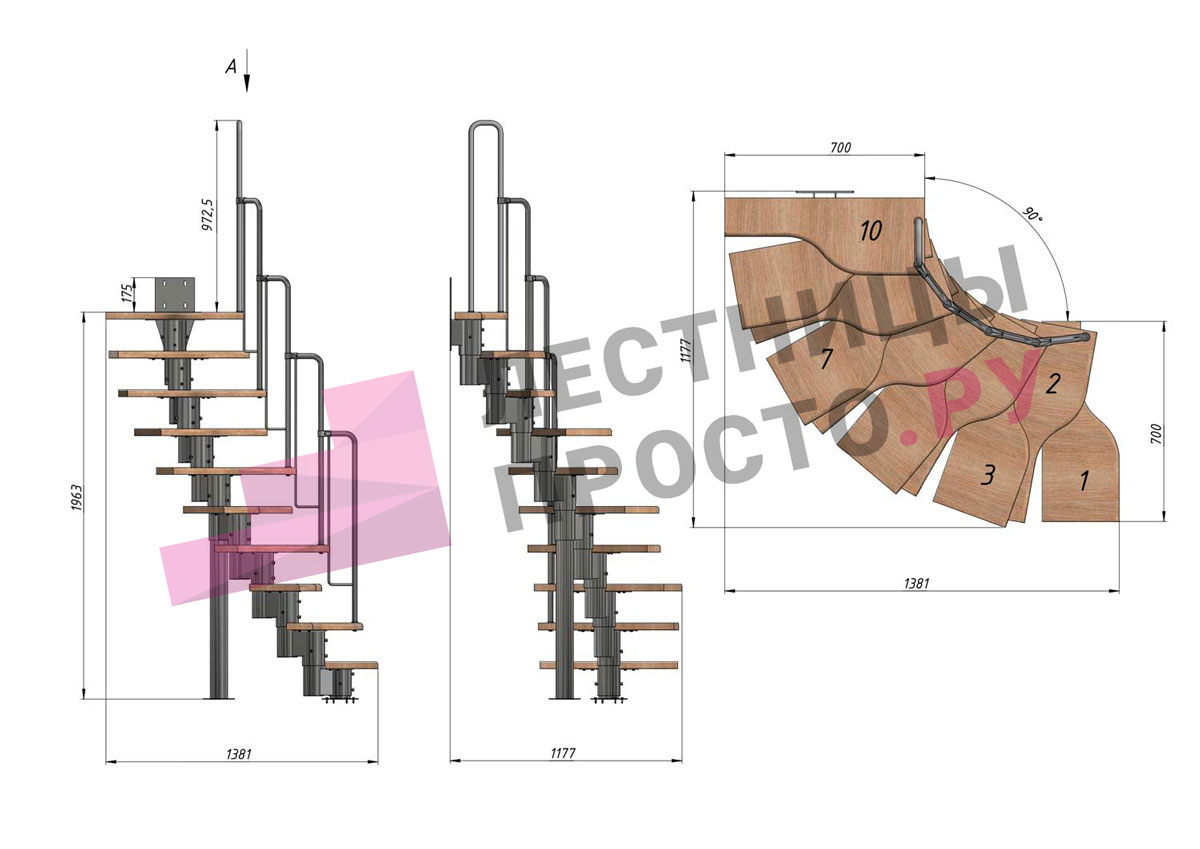 Лестница Prosto Urban White гусиный шаг 700 мм, h180-264 см (10 ступеней), бук