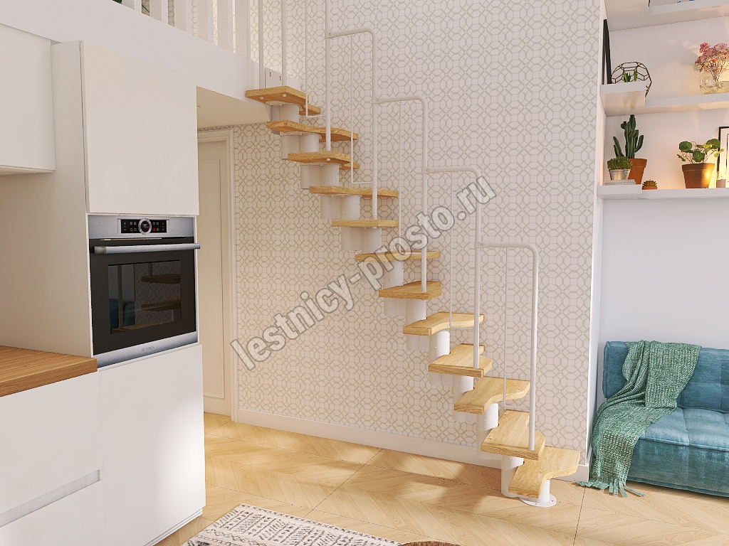 Лестница Prosto Urban White гусиный шаг 700 мм, h234-336 см (13 ступеней), берёза мультиплекс