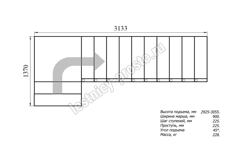Модульная лестница Статус 225 2925-3055, Серый, Лиственница, Крашеная