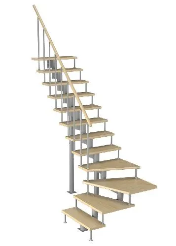 Модульная малогабаритная лестница Эксклюзив 2925-3150, Серый, Сосна, Нержавеющая сталь