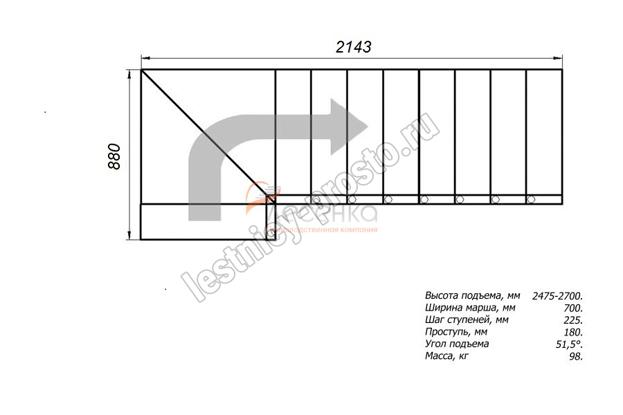 Высота лестницы 2475 - 2700 мм
