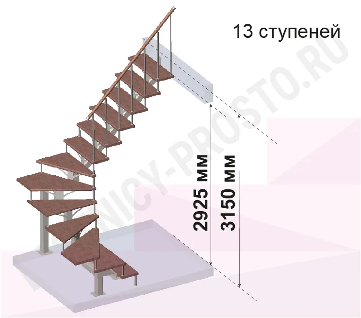 Лестница PROSTO MONO П-образная, h315 см, ступени хвоя |