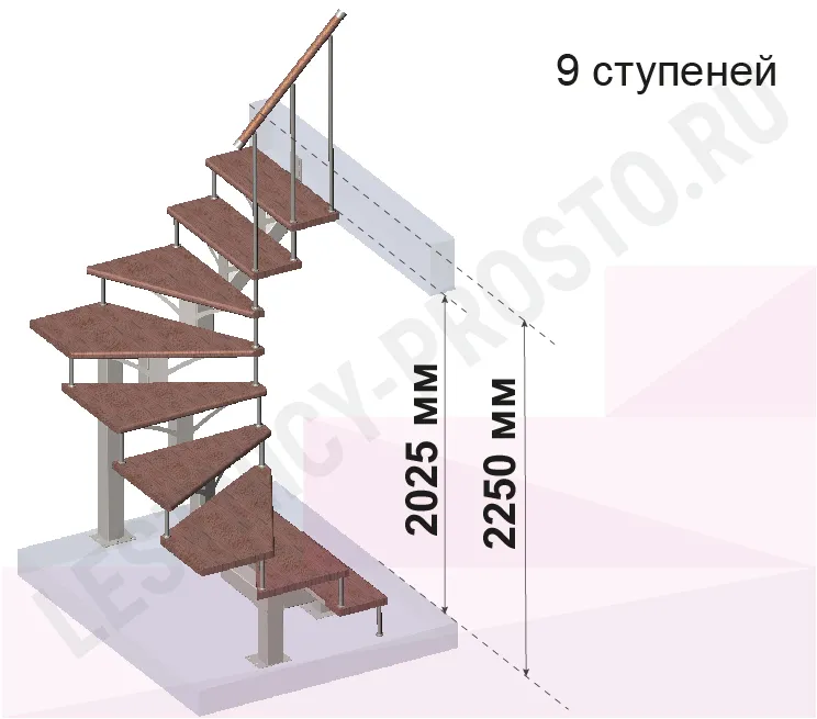 Лестница PROSTO MONO П-образная, h225 см, ступени хвоя |