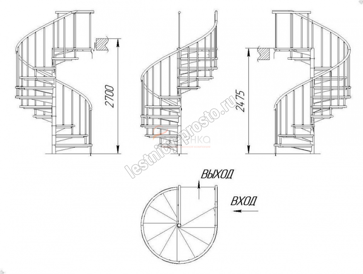Винтовая лестница ЛЕС-1,8 высота 2475-2700, Серый, Лиственница