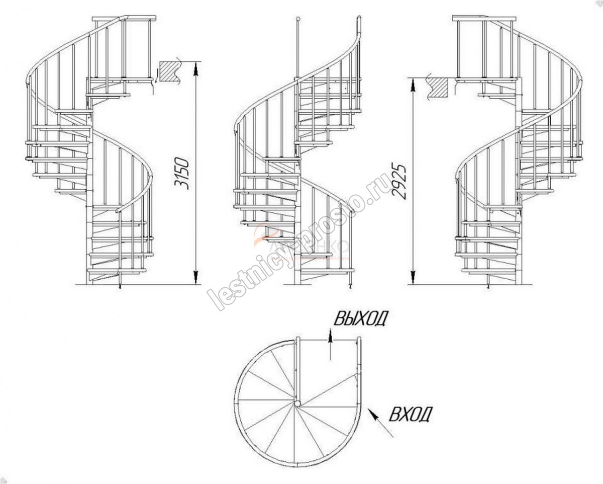 Высота лестницы 2925 - 3150 мм