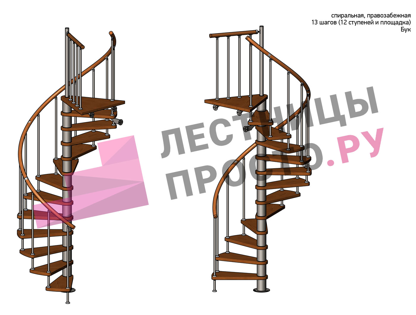 Ширина ступени между центральной колонной и поручнем ≈ 580 мм