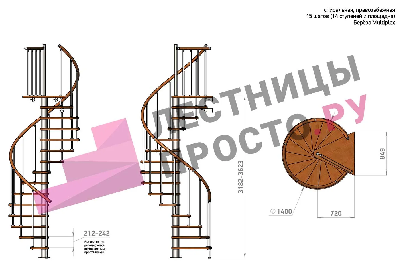 Решение об ориентации поворота принимается при сборке лестницы (комплект собирается и в правозабежную, и в левозабежную лестницу).