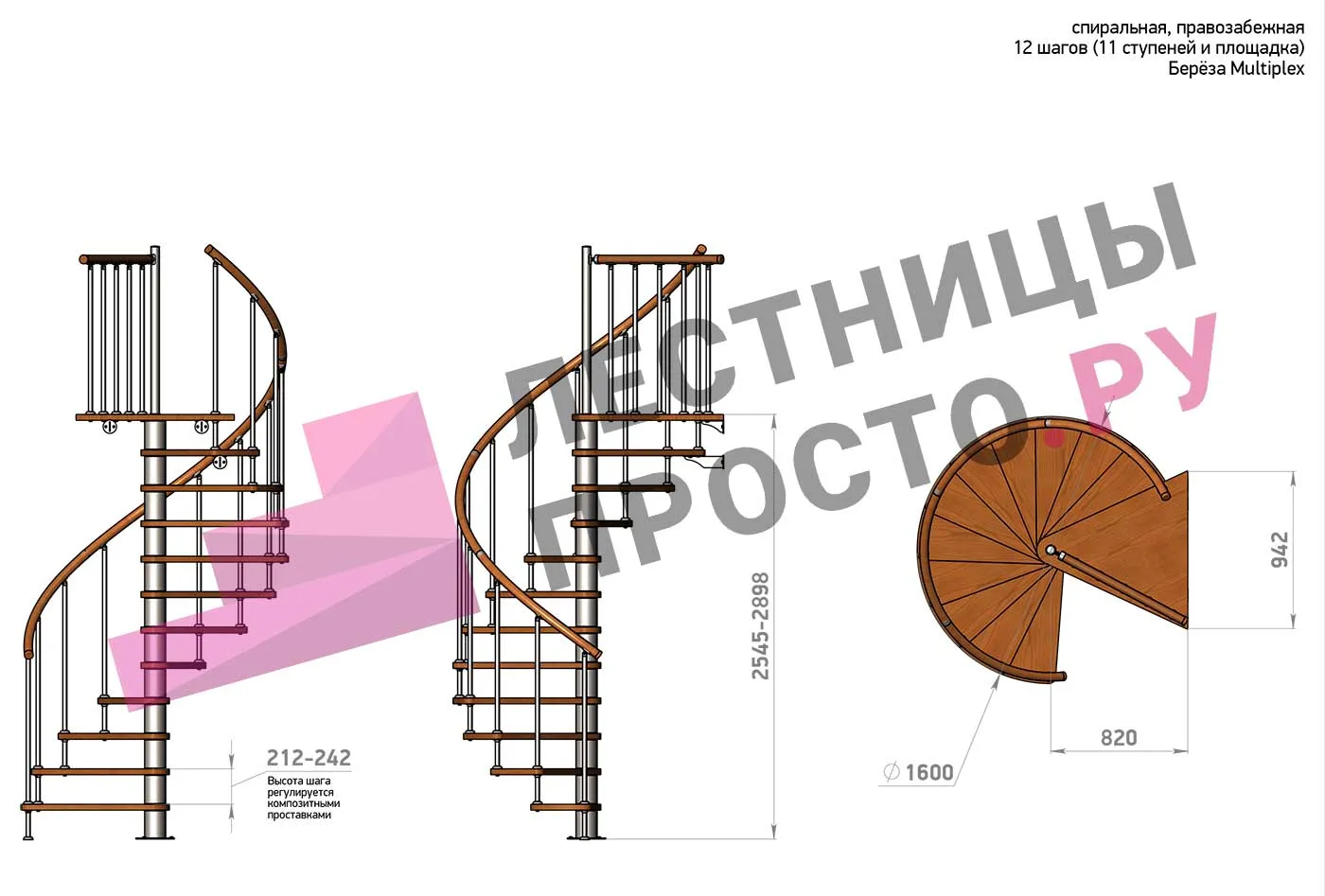 Высота шага 212 - 242 мм