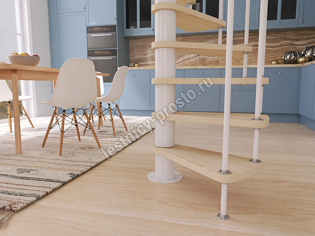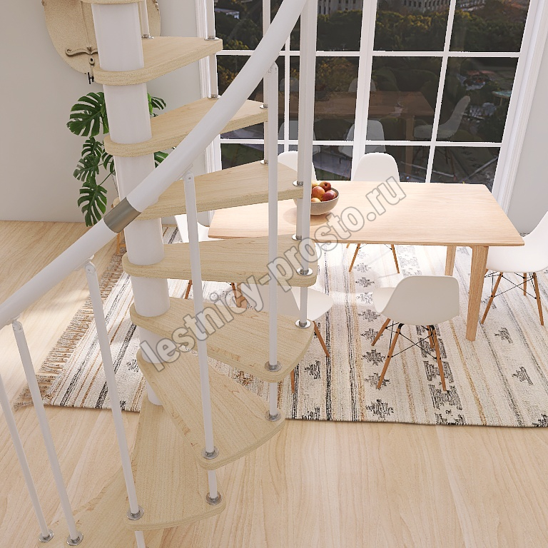 Винтовая лестница Prosto Spiral White D120см, h303.9-348,1 см, бук |