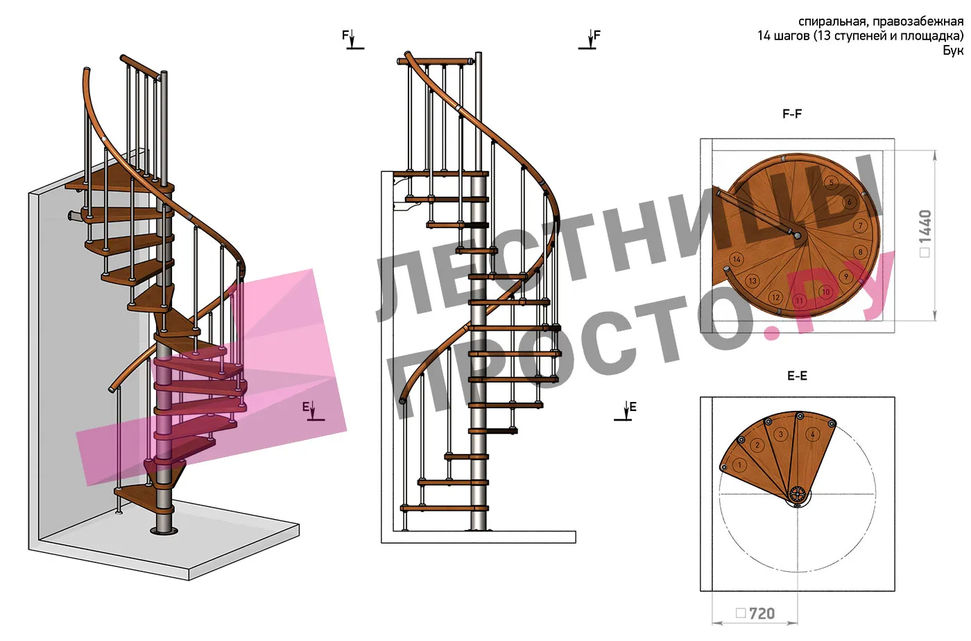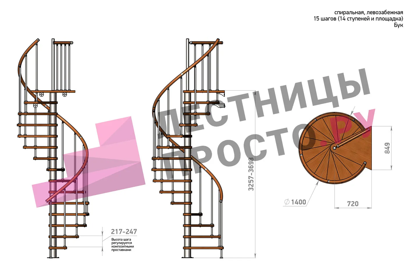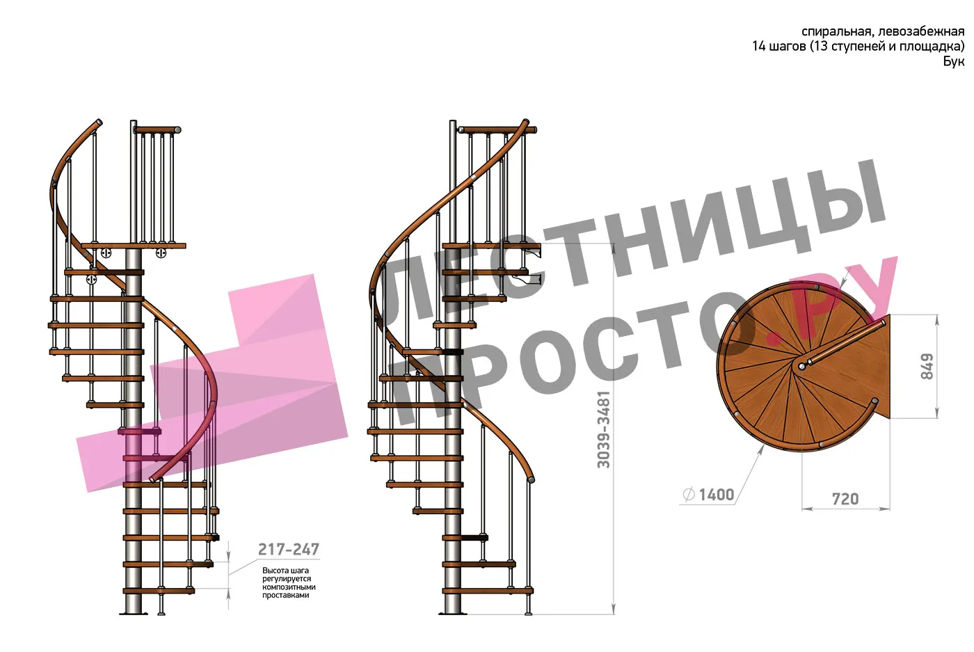 | Винтовая лестница Prosto Spiral White D140см, h303.9-348,1 см, бук |