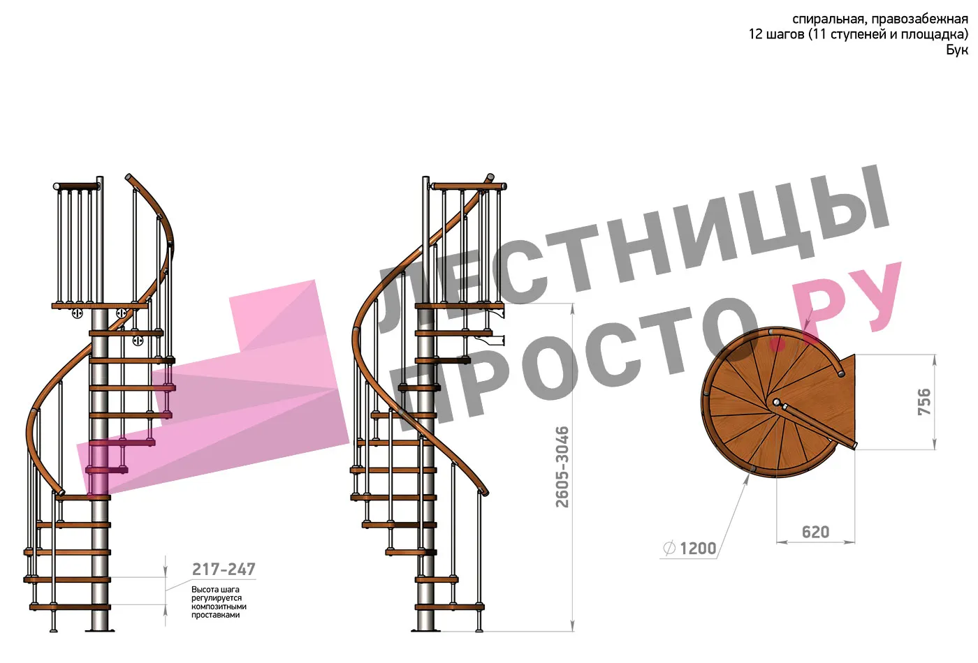 | Винтовая лестница Prosto Spiral White D120см, h325.7-369.8 см, бук |