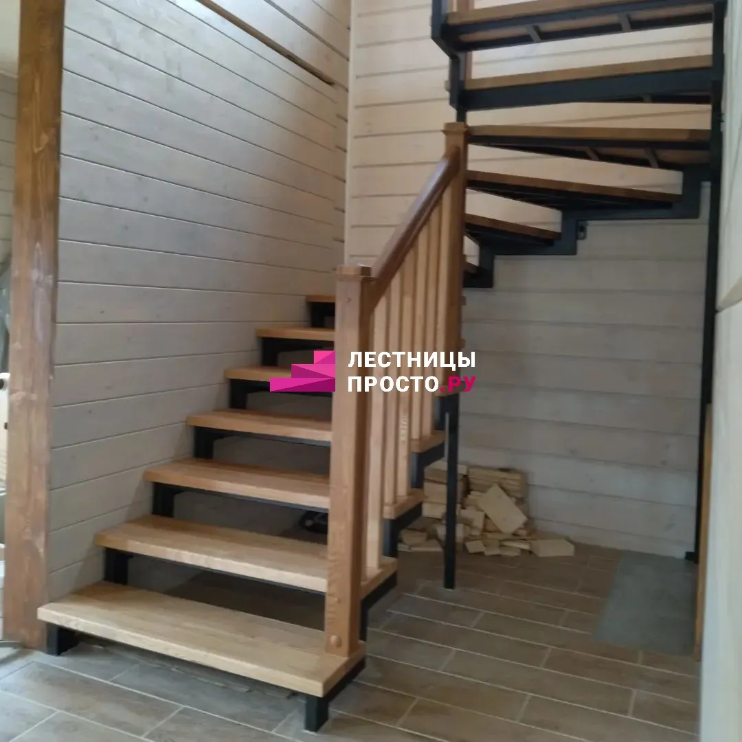 Металлическая лестница с дубовыми ступенями и ограждением LP-1-20