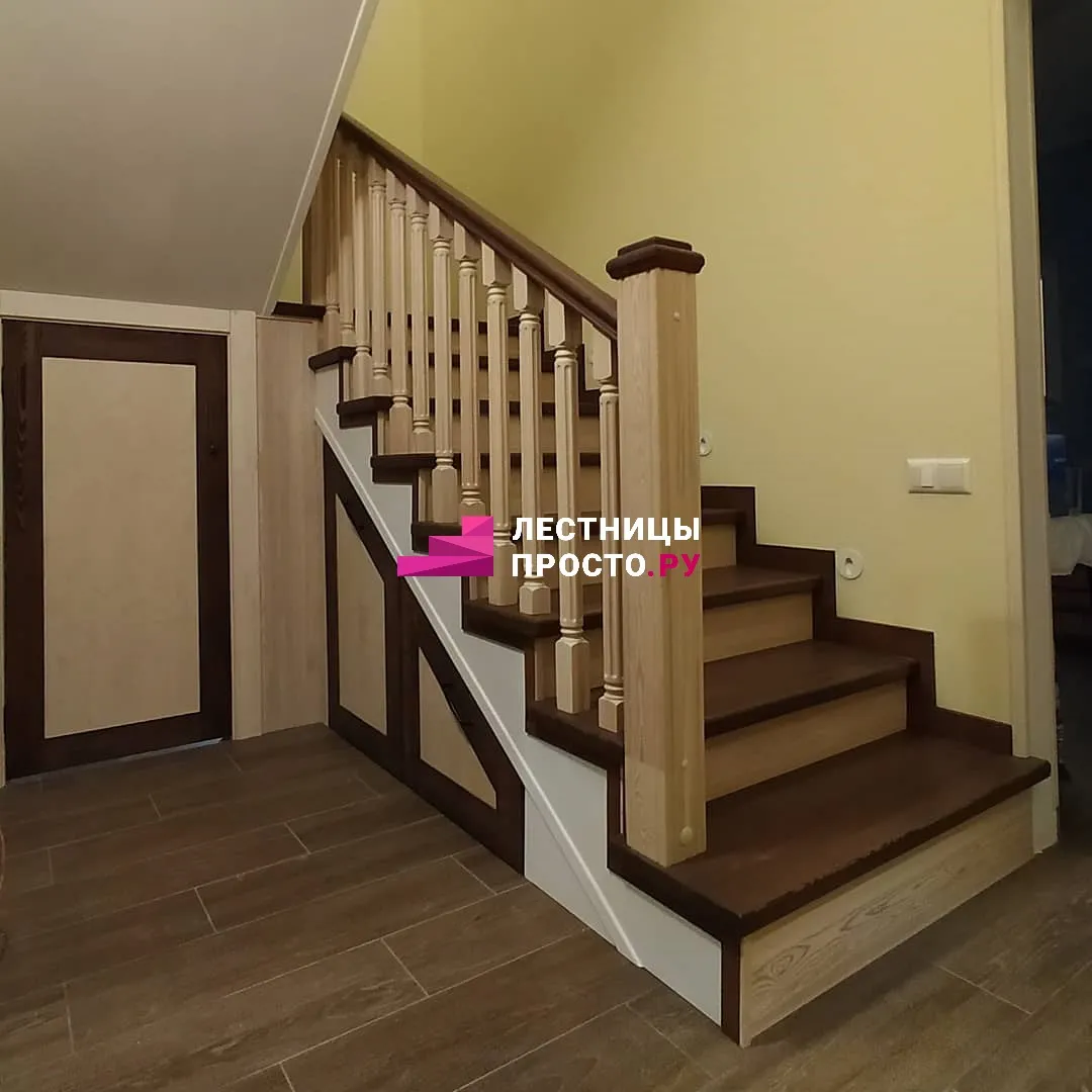 Подступенники, фальш-косоуры и сапожки (пристенной плинтус) выполнены из МДФ.